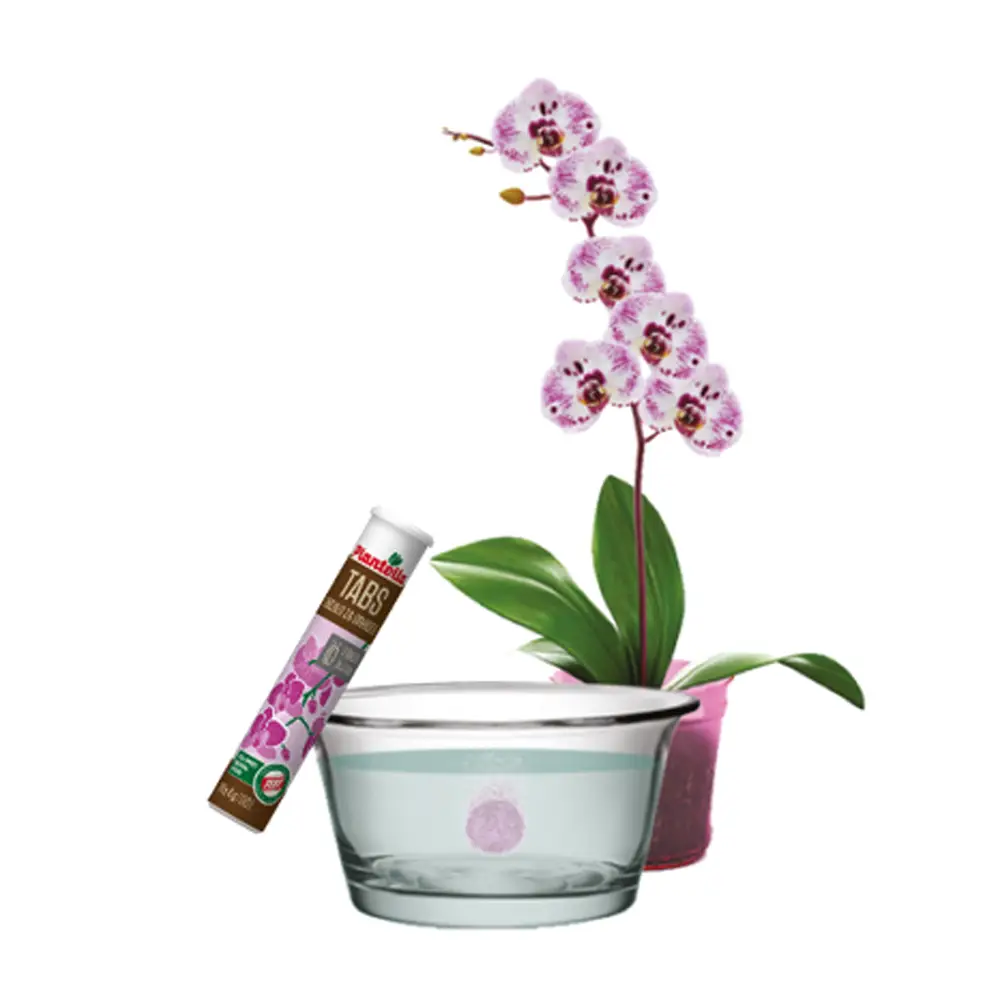 Avem nevoie de apă la care adăugăm Plantella tablete pentru orhidee, care imită dieta orhideelor așa cum au în natură, conținând în același timp toate micro și macroelementele esențiale necesare pentru o creștere optimă. Cu o solubilitate excelentă, tableta oferă o disponibilitate uniformă a nutrienților, astfel încât promovează creșterea luxuriantă și rezistența la stres. Îngrijite în acest fel, orhideele vor înflori abundent și mult timp.