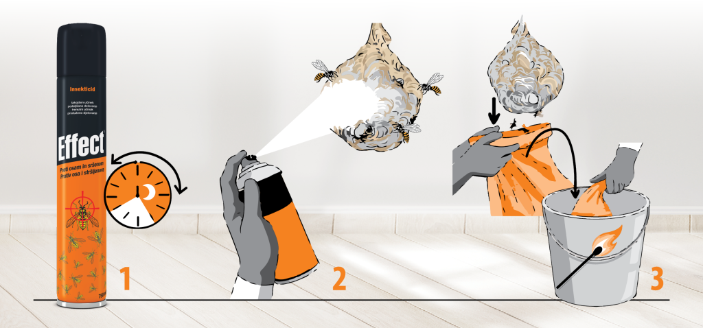 Cea mai rapidă și eficientă metodă este folosirea insecticidului sub formă de aerosol Effect împotriva viespilor și gărgăunilor.