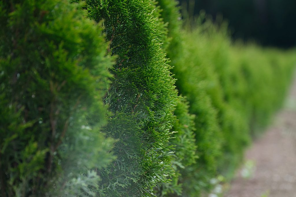 Când vine vorba de răsaduri în ghivece, avem o gamă de răsaduri de diferite dimensiuni. Și cu ele, acordăm atenție celei mai mici creșteri posibile a ramurilor inferioare. Timpul de plantare este posibil pe tot parcursul sezonului de creștere, din primăvară până în toamnă, datorită creșterii în ghivece. Evităm plantarea în căldura verii. Înainte de a decide asupra unui gard viu cu un singur rând sau două rânduri, trebuie să ne amintim că într-o plantare pe două rânduri, lățimea finală a plantelor adulte este considerabilă. Acesta este un gard viu foarte larg și dens, care în lățime poate depăși 1 m.
